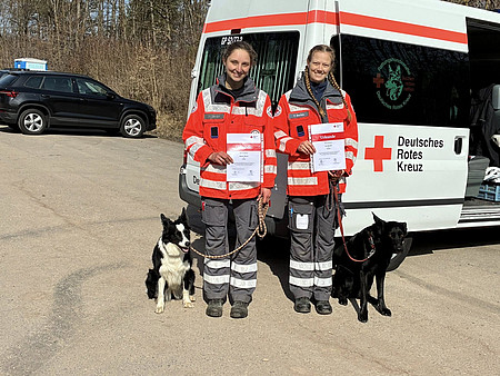 Unsere Kira und Miriam durften bei der DRK Rettungshundestaffel Nürtingen-Kirchheim/Teck zur Wiederholungsprüfung in der Sparte Fläche antreten.
